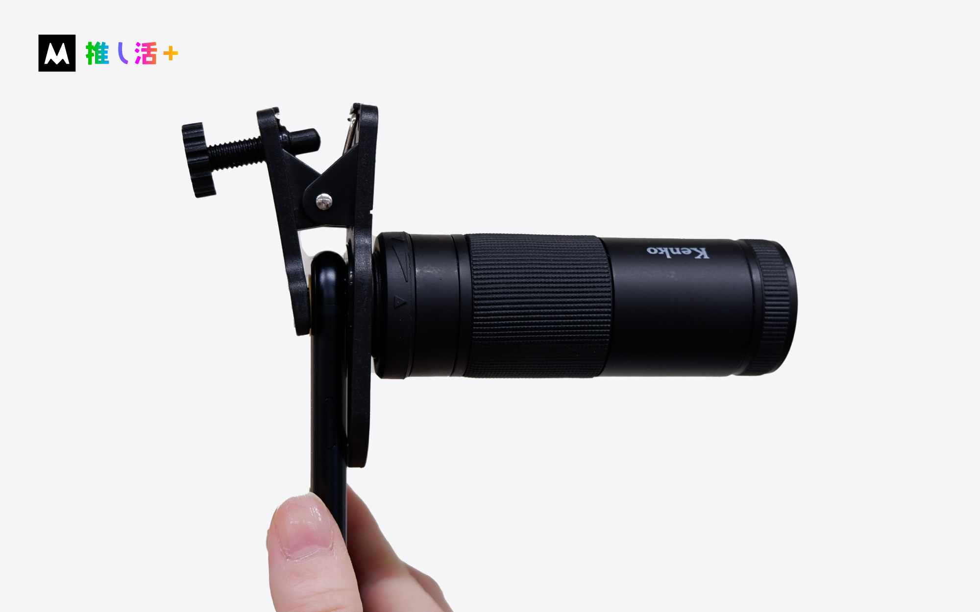 クリップからレンズを外し、8 倍単眼鏡としても利用可能。