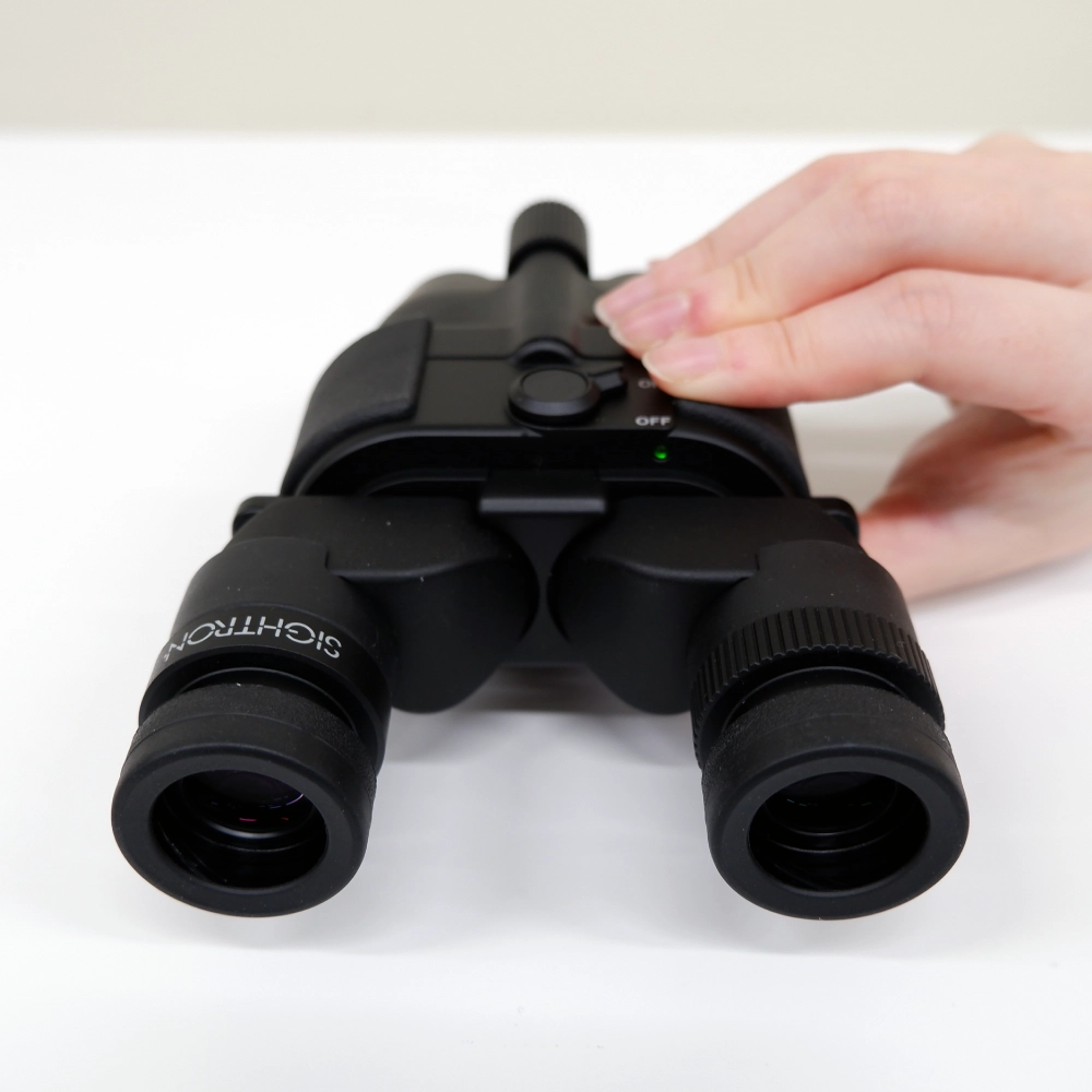 サイトロン FESTA は、初めて使用する方や、手軽に利用したい方におすすめの防振双眼鏡です。軽量・コンパクト設計なので、長時間でも片手だけで楽しめます。また、電源をオンにするだけで手振れ補正機能がはたらくので、手振れに煩わされることはありません。電池寿命も約34時間と長時間稼働するので、電池切れの心配もなく、ずっと推しに集中できます。