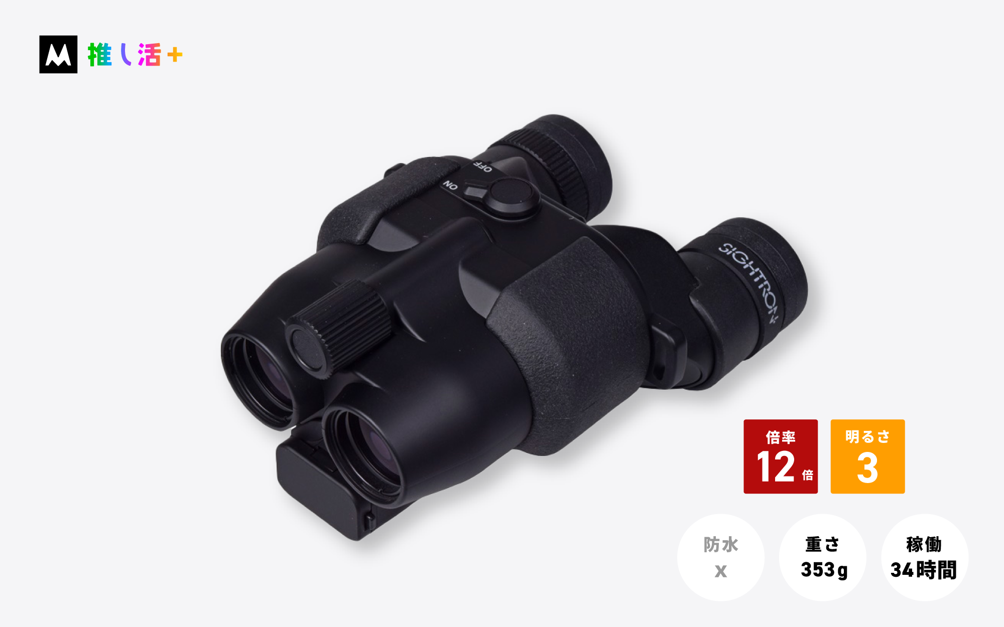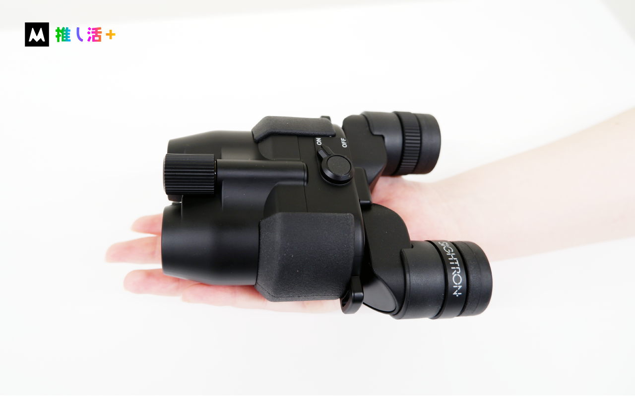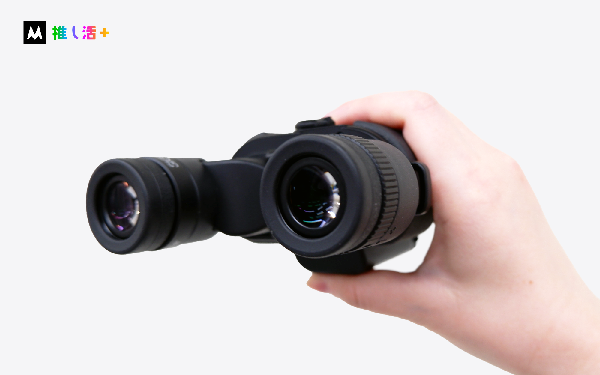 軽いッ! 世界最軽量の名はダテじゃあない。実際現場で使ってみましたが、「ずっと構えてられる」のはこいつです。他の商品だと右手と左手で持ち替えながら使っていても、やっぱりちょっと疲れるなーと。選び方としては推しを鮮明に見たいのならほかの商品、推しの一挙手一投足を網膜に焼き付けたい方はこいつを選んだ方が良いと思います。